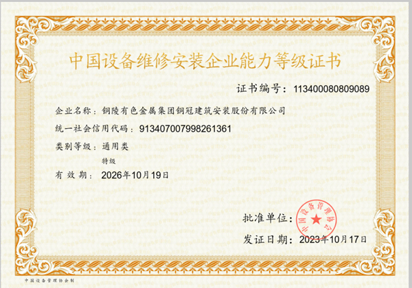 中国设备维修安装企业能力等级证书